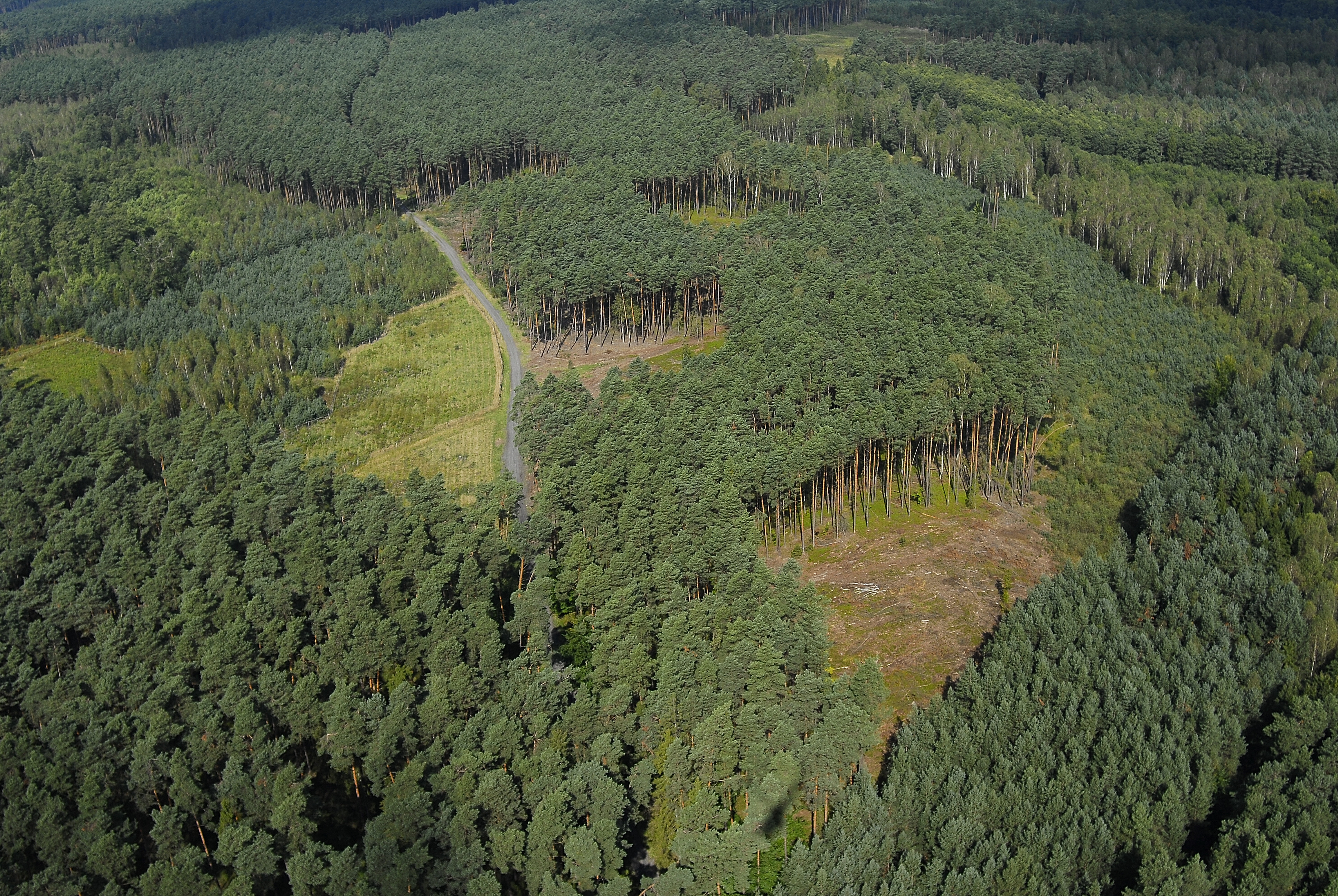 Przebudowa litego drzewostanu sosnowego za pomocą tzw. gniazd. Na "gniazda" (przestrzenie o powierzchni do 50 arów przejściowo pozbawione drzew) wprowadza się sadzonki innych gatunków. W efekcie powstaje drzewostan zróżnicowany wiekowo, gatunkowo i przestrzennie - bogatszy przyrodniczo niż monokultura (fot. J. Sieczka).